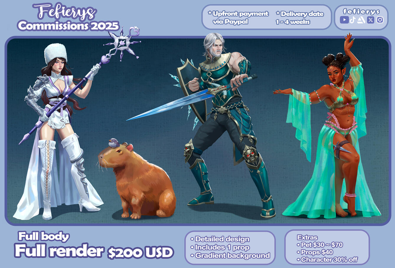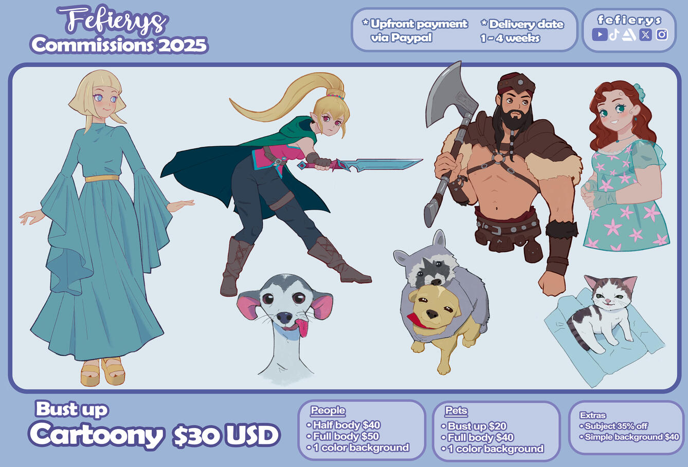 [email protected] or discord @fefierys (I respond faster in these two options)What do I need to send to order the commission?